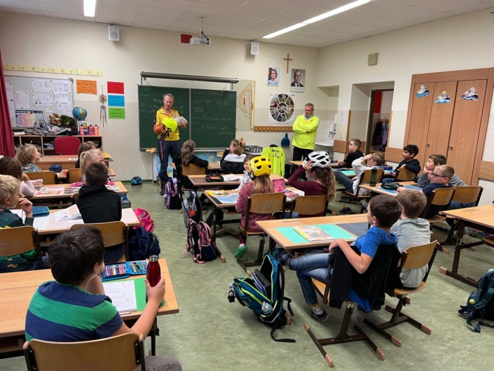 Im Zuge der gesundheitsfördernden Aktion „klimaaktiv mobil“ des Bundesministeriums durften die Kinder der 2. und 4. Klasse an einem Radfahrtraining der Easydriver Fahrradschule teilnehmen. Wetterbedingt konnte das Training leider nicht wie geplant am Eisschützenplatz stattfinden, sondern musste im Trockentraining im Klassenzimmer und im Turnsaal absolviert werden.