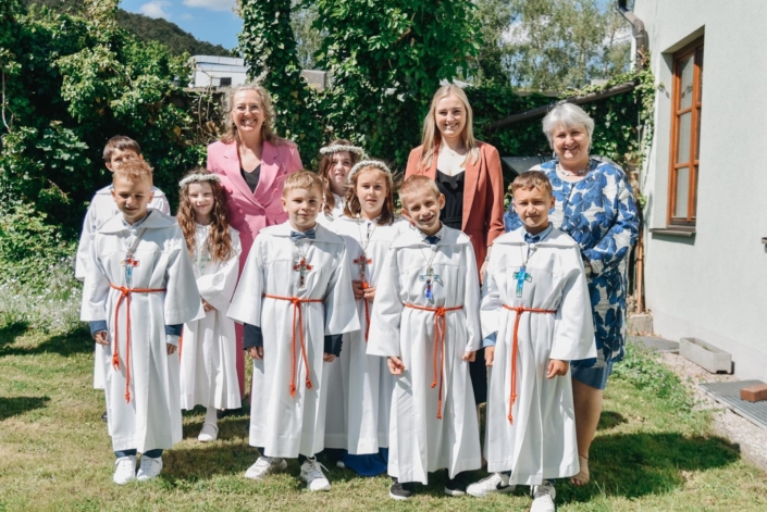 Insgesamt 8 Kinder nahmen heuer an der sehr feierlichen Erstkommunion teil. Musikalisch wurden die Kinder der 2. Klasse von Hannes Demuth auf ihren großen Tag bestens vorbereitet und von den Young Voices unterstützt.