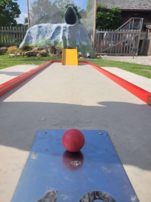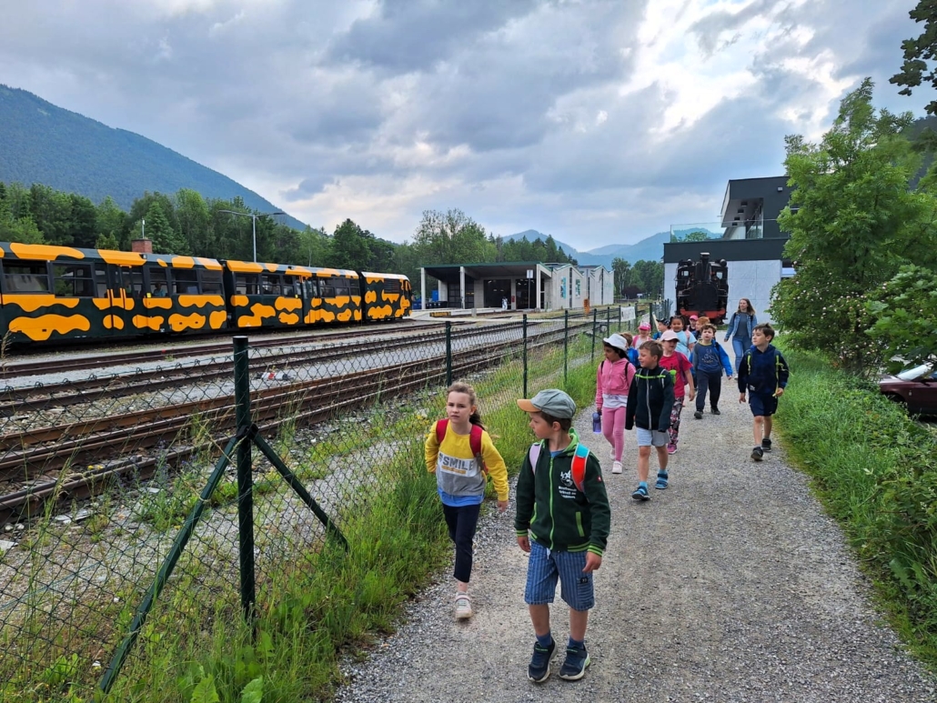 Die Kinder der 1.und 2. Klasse fuhren gemeinsam mit dem Zug zum Minigolfspielen nach Puchberg. Familie Schiefer begrüßte und betreute uns hervorragend. Die Kinder durften in Gruppen die 18 Bahnen testen und sich beim Golfen messen.