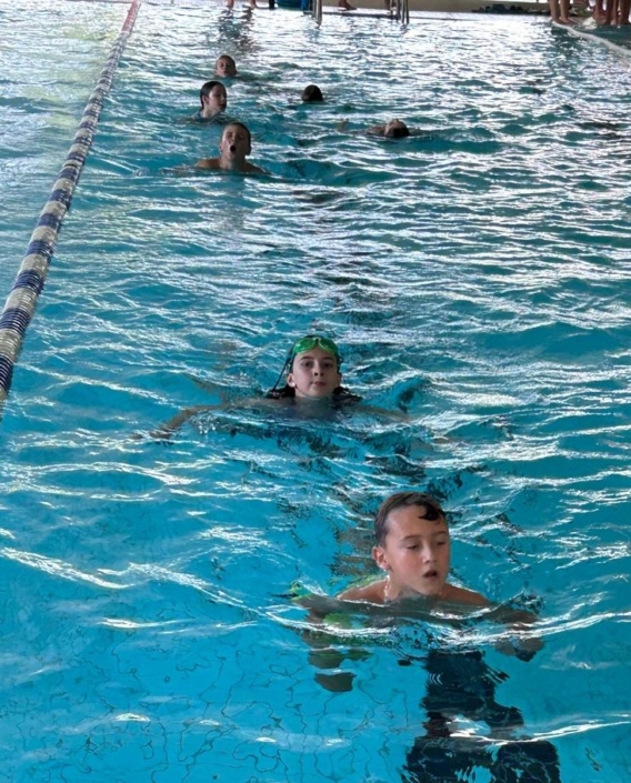 Die 3. und 4. Klasse fahren an vier Schulvormittagen ins Hallenbad Neunkirchen zum gemeinsamen Schwimmunterricht.