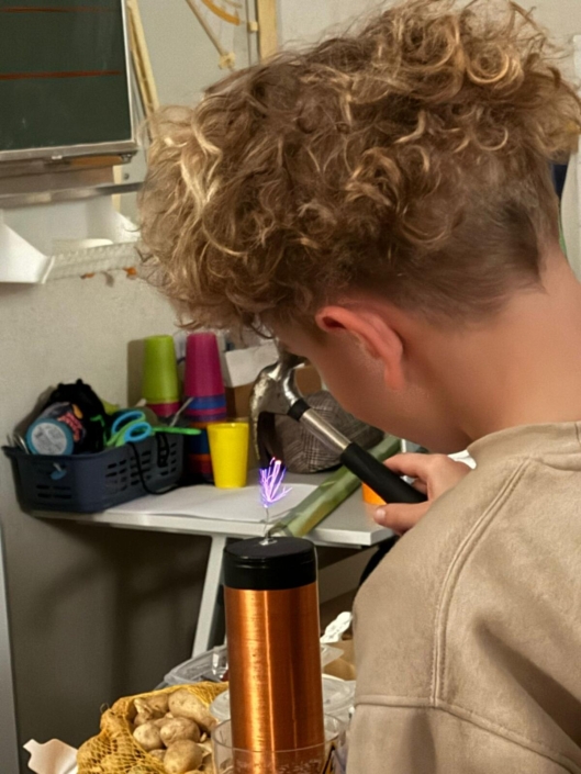 Die Kinder der 4a experimentierten heute im Science Class NÖ Workshop zum Thema „Herrscherin der Blitze“ mit Strom. Sie durften einen LED-Zauberstab selbst herstellen und einen Blitzableiter mit der Tesla-Spule ausprobieren. Außerdem haben die Kinder mit dem Musik-Tesla beispielsweise dem Hochzeitsmarsch „gelauscht“.