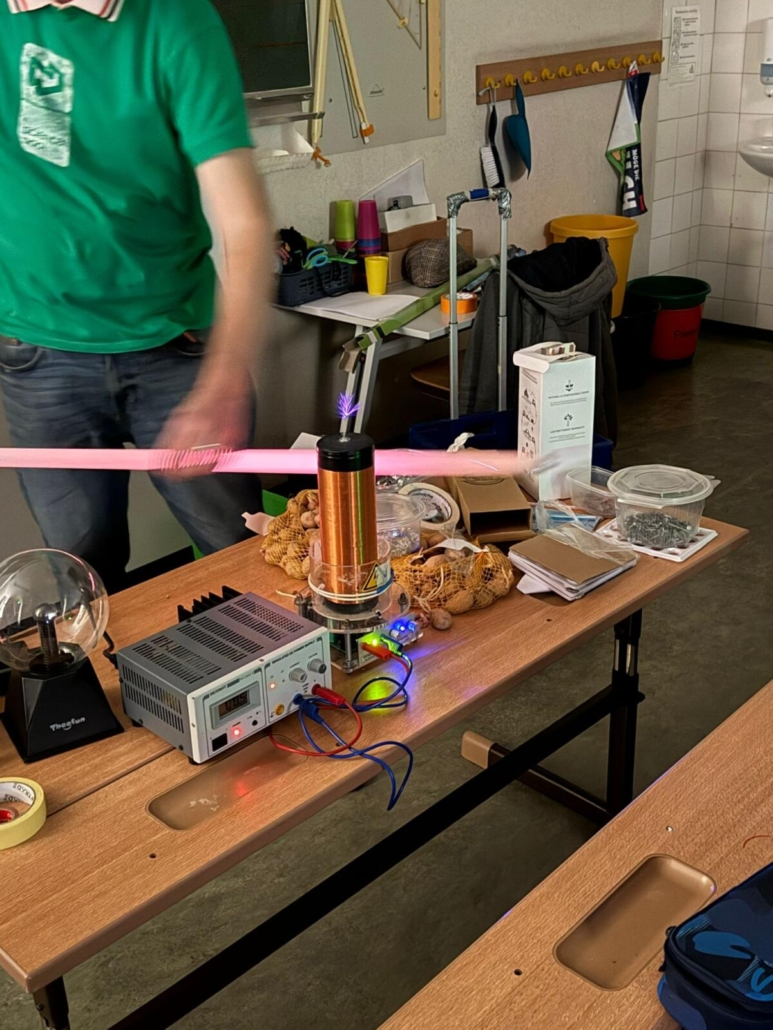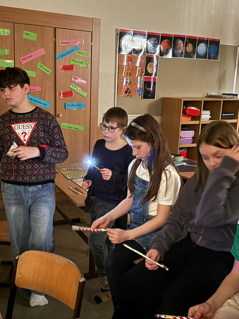 Die Kinder der 4a experimentierten heute im Science Class NÖ Workshop zum Thema „Herrscherin der Blitze“ mit Strom. Sie durften einen LED-Zauberstab selbst herstellen und einen Blitzableiter mit der Tesla-Spule ausprobieren. Außerdem haben die Kinder mit dem Musik-Tesla beispielsweise dem Hochzeitsmarsch „gelauscht“.